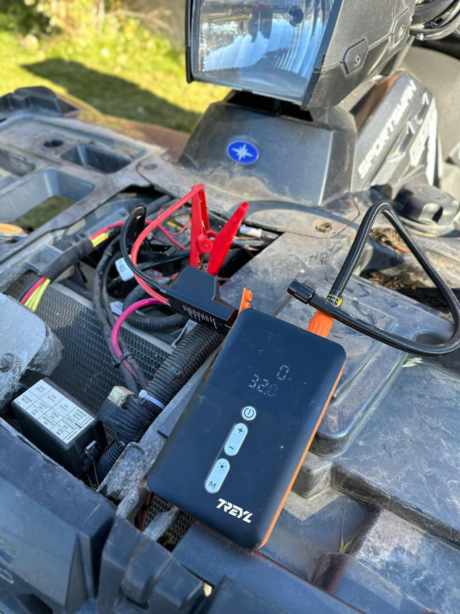The TREYL Vortex Pro is your trusty adventure companion. Never leave the house or shop without the quick and portable ability to jump start a vehicle/machine and blow up a tire.